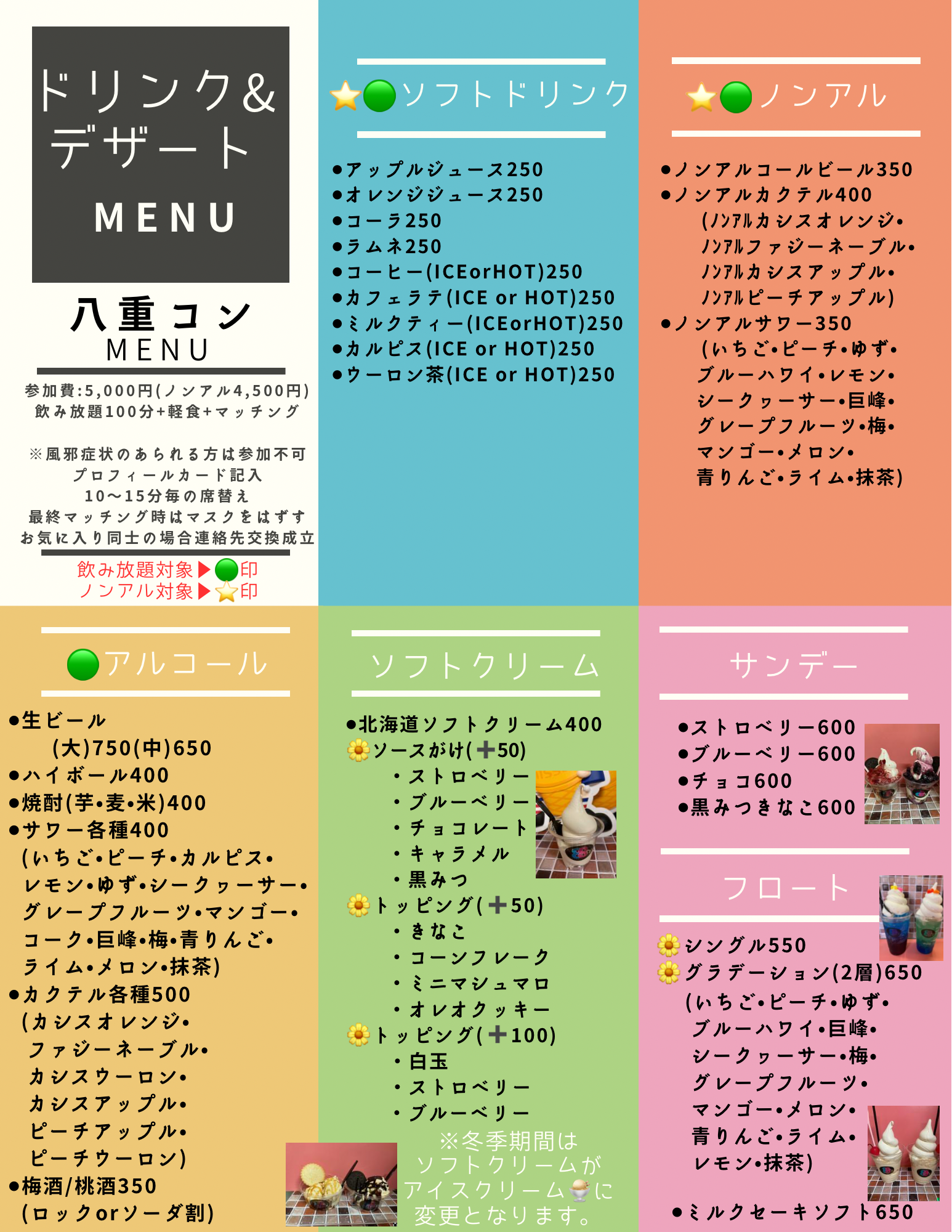 ・100分飲み放題+料理+マッチングタイム